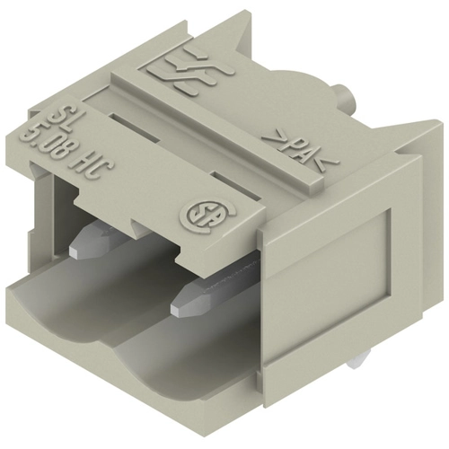 PCB connectors, male header, dovetails for mounting blocks, THT solder termination, 5.08 mm, pole count: 2, 90°, 3.2 mm, pebble gray, Bo