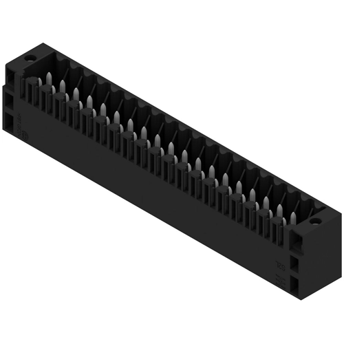 The male header with a pin length of 3.5 mm is designed for wave soldering and is packed in a box. It can be screwed on to the PCB. The male header provides space for labelling and can be coded.
