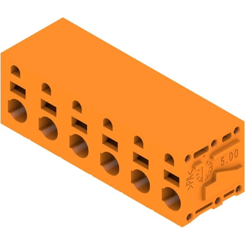 Printed circuit board terminals, 7.50 mm, Number of poles: 6, 90°, Solder pin length (l): 3.5 mm, orange, PUSH IN, Clamping range, max. : 2.5 mm², Box.