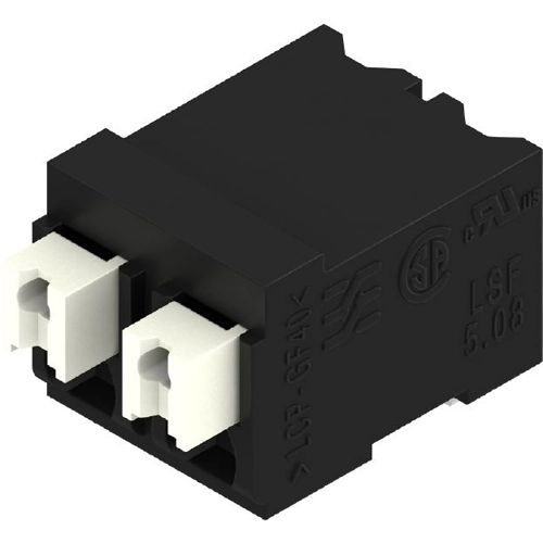 Printed circuit board terminals, 5.08 mm, number of poles: 2, 90°, Solder pin length: (l): 1.5 mm, black, push-in with actuator, clamping range, max.: 1.5 mm².
