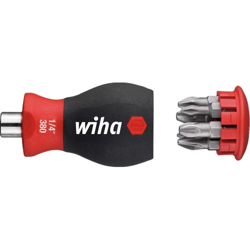 The Stubby magazine bit holder contains bits in its handle. If you remove the cap on the end of the SoftFinish multi-component handle, six 25 mm bits appear, designed for all standard screw fastenings. The magazine bit holder is thus flexible in its use and an attractive alternative to screwdriver sets, especially for portable use. The magnetic holding feature in the integrated bit holder ensures easy handling and an optimum grip. The practical, compact size sets the Stubby bit magazine apart as a specialized tool for working in highly confined spaces.
