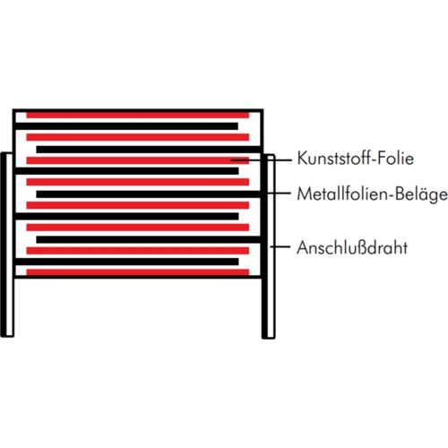 The FKP2C023301L00JSSD is a Film/Foil capacitor. This product construction is mainly used for capacitors with smaller capacitance value, the advantage of this construction principle is the easy contactability of the metal foil electrodes and the good pulse strength. The insulating film chosen is always thicker than theoretically required by the values which are determined from the specific breakdown strength of the material.