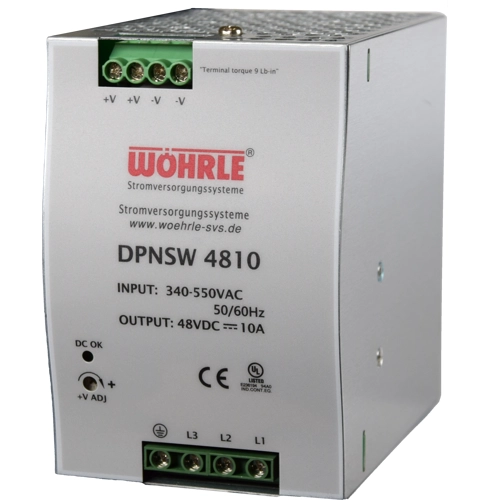 Power supply, 3-phase, 48 to 55 VDC, 10 A (0 to 10 A), 480 W, DPNSW4810