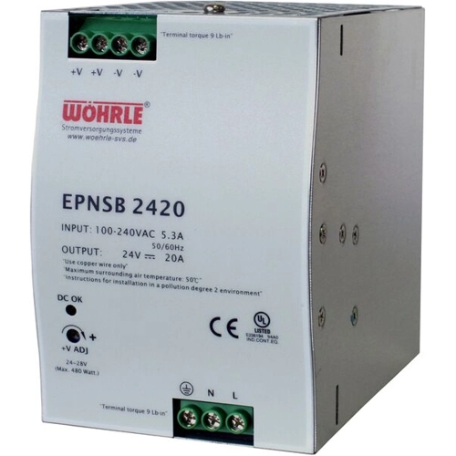 Power supply, 1-phase, 24 to 28 VDC, 20 A (0 to 20 A), 480 W, EPNSB2420