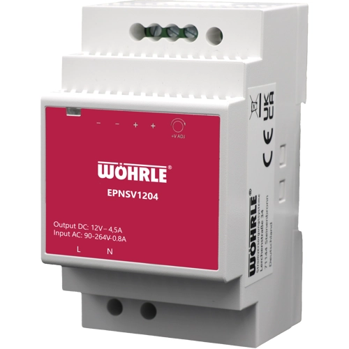 Single-phase power supply unit for distribution box installation, output: 12 volts DC, power: 4.5 amps