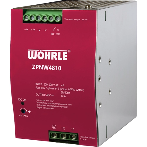Power supply, 1/2-phase, 48 to 55 VDC, 10 A, 480 W, ZPNW4810