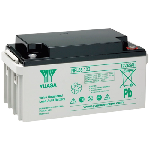 NPL65-12I is a Valve Regulated Lead Acid Battery with a valve-actuated design that reaches almost 100% oxygen recombination. It has an impact- and break-resistant plastic housing made of ABS.
